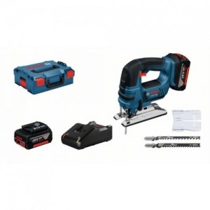 Sierra de calar a batería GST 18 V-LI B, Sierra de calar con empuñadura de estribo muy potente en la categoría de 18 V, La empuñadura de estribo con activador de velocidad variable proporciona un control óptimo y sencillo de la herramienta, El sistema SDS de Bosch sin herramientas facilita el cambio de la hoja de sierra, Potente rendimiento de 18 V para un avance de trabajo rápido, L-BOXX 136 (1 600 A01 2G0), 2 baterías GBA 18V 4.0Ah (1 600 Z00 038), Cargador rápido GAL 18V-40 Professional (1 600 A01 9RJ), 1/1 bandeja para L-BOXX para herramienta y cargador (1 600 A00 3NH), 1 hoja de sierra de calar T 308 BP, Precision for Wood (disponible como juego aparte de 3: 2 608 667 399), 1 hoja de sierra de calar T 144 DP, Precision for Wood (disponible como juego aparte de 3: 2 608 633 A31), 1 hoja de sierra de calar T 244 D, Speed for Wood (disponible como juego aparte de 3: 2 608 630 879), Capucha (2 601 016 096)